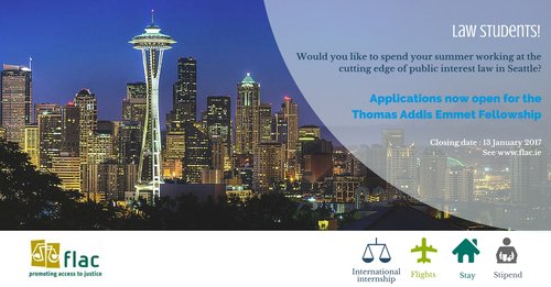 FLAC is now accepting applications for the 2017 Thomas Addis Emmet Fellowship – a unique opportunity awarded each summer to an Irish law student interested in working on critical social justice issues and developing skills in public interest law practice.